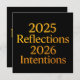 Reflect, reset and set powerful intentions for 2026! This elegant gold typography design inspires mindful goal-setting and year-end reflection. Perfect for journals, planners or cards—chic, simple and deeply meaningful. Stylish enough for celebration, thoughtful enough for transformation!