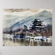 Bring tranquil beauty into your space with this Reflective Castle Poster, featuring a graceful watercolor landscape of a traditional pagoda nestled beside a still lake. Snow-capped mountains rise in soft, misty layers behind it, creating a peaceful harmony of nature and architecture. The gentle brushstrokes and muted tones evoke calm, reflection, and timeless elegance—perfect for adding a touch of Zen to any room.
