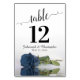 De vackra bordsnumren gör det enkelt för dina gäster att hitta sina platser på bröllopsmottagningen. Har en strålande design med lacy script calligraphy och en enda dammig stålblå ro ljugande på sidan med räfflor vinkarare och reflektioner. Det finns utrymme för parets datum namn och bröllop.