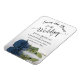 Dessa vackra magneter är ett underbart sätt att låta dina vänner och familj veta att rädda datumet för ditt kommande bröllop. De har en elegant som är utformad med lacy script calligraphy och ett foto av en enda dammig stålblå färgad ro som reflekterar i ett bassäng med vinkara och krämer.