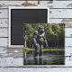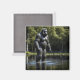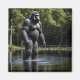 Sasquatch som står vid sjö i skogen ai-konsten.