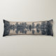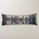 En svart och vit panoramabild av en linje av träd i skogen som reflekteras i ett spegel som liknar sjö under ett grumligt himlar.