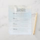Den här anpassade blästersidan på 8,5 x 11 tum har en bakgrund av vår ursprungliga bra-bild av en blek plue vatten-reflektion. Den här bärbara datorns fyllning är papper att anpassa - uttrycka din egen känsla, ändra namn och ta bort eller ändra data. Sidan är förformaterad så att deltagarna lägger till sin kontaktinformation och ett meddelande när de loggar in, 4 namn per sida. Du måste slå hål för att få plats i din pärm. Originalfotografi av Marcia Socolik. Alla Höger förbehållna © 2022 Alan & Marcia Socolik