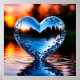Reflektivt blåhjärta i Vatten vid solnedgång Poster