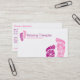 Ett affärskort för snyggt för reflexologi med en logotyp som innehåller ett par fot och spiral design.
