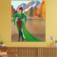 Originalkonst av en regalsvart kvinna i en modefärdig grönt klänning, lädertrikåer och stövlar på en slottskål som tar sig in i luft och njuter av det vackra Höst löv. Perfekt för Höst- och Thanksgiving-dekor. Perfekt för mode älskare.