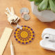 Ett lysande kalejdoskop i fet färg av lila, orange och gult! Matchande design på klistermärken, muspekare, hälsningskort, porto frimärke, nyckelkedja, affärskort, t-shirts med mera!