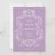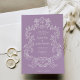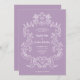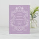 Den här elegant- och lyxbröllopsinbjudan innehåller en vintage konst ram med ornate baroque stil. Den vita illustrationen sitter på en lavendel lila bakgrund. Modern manusgrafi och klassisk text, tillsammans med initialer eller monogram, gör detta till ett klassligt men aktuellt val av contemporary för bröllop.