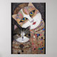 Aspektförhållande 3:4 Detta Klimt inspirerade biet är en stavningskoppling av kattportrat och ett komplicerat mosaikarbete. Två kattdjur figurer, som återges med slående kontrast, ställs in mot en rik som binder ihop och texturerade mosaikplattor. Katternas övertygande ögon tycks ha en mängd historier, medan deras ornerade halsband antyder en nästan regal bäring. Denna teckning är en firande av kattens mystik och storhet, som förespeglas genom ett kalejdoskop med krympande plattor och djärvt färg.