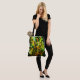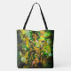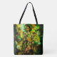 En AI-genererad målning av en tittar kvinna i gröntens bakgrund