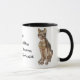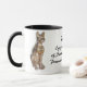 Vit och svart 11 oz. ringkamera mugg med en bild på båda sidor av en brassstaty av den antika egyptiska gudinnan Bastet och en gudinna beskrivning i mitten.