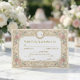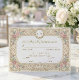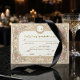 Sätt tonen för en tidlös fest med denna vintage-inspirerade design. Perfekt för att begära nöjet av dina gästers närvaro vid en formell tillställning.Designen har en varm, krämfärgad bakgrund som är skiktad med en tryckt antikt papperstextur för att framkalla en känsla av historia. Layouten ramas in av en symmetrisk kant med mjuka blushrosa rosor och salvia gröna blad, sammanflätade med falska guldfiligranrullar. En delikat linjeteckning av en kerub vilar längst ner i mitten, medan en oval ram längst upp visar anpassade initialer. Typografin blandar ett traditionellt serif-teckensnitt med svepande kursiv skrift för en förfinad finish.Detta är en platt tryckt bild med en falsk guldfolie- och pergamenteffekt, inte