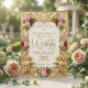 Transporter dina gäster till en kunglig saga med denna vintageinspirerade design med mjuka rosa blommor och en lyxig falsk guldornamentram.