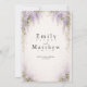 Invite your guests to a romantic, Regency-inspired celebration with this elegant wisteria wedding invitation. Soft lavender watercolor wisteria drapes across the top corners with delicate floral accents at the base, framing a large clean center space for your custom wording. This design is ideal for garden weddings, afternoon tea receptions, spring and summer ceremonies, and vintage-inspired bridal events. Part of the Bridgerton Bridal collection, it pairs beautifully with matching RSVP cards, details cards, save the dates, menus, place cards, and thank you notes for a cohesive wedding stationery set.