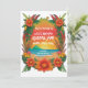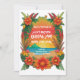 Färgglad reggae-fest inbjudan med en solnedgång på en ö omgiven av tropiska blommor