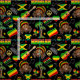 Reggae Music fläkt kommer att kärlek denna färgstarka reggae-matade väv. Den har rasta manar, musikinstrument och Jamaican och Rastafari flaggor