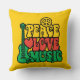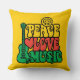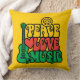 Typ av FRED, KÄRLEK och MUSIC med gitarr, fredssymbol, hjärta och musik noter i gult, rött och grönt.