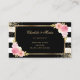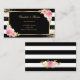 Elegantens svarta och vita, stripade blommigt bröllop-registreringskort med rosa, elfenben och persikor och guldgrön med guld. Matchande objekt är tillgängliga.