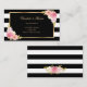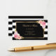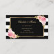 Elegantens svarta och vita, stripade blommigt bröllop-registreringskort med vattenfärgade rosa blommor och gyldad grönska. Matchande objekt är tillgängliga.