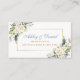Vattentärsfärg I registret för vit Blommigt Grey Bröllop Inmatningskort omfattar elfenbenskräm vit ros och botaniskt grönämne. Guld Ram, Guld-skript, Dusty Blue Back