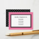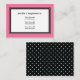 Registreringskort för Retro-Möhippa. Lägg till inbjudningarna för att informera gästerna om var den blivande briden är registrerad. På framsidan av detta Retro Möhippa Registry Card finns en rosa och svart trim med platshållare för Brides Namn och registerinformation. Hela texten kan redigeras. Baksidan av registreringskortet är en roligt, fet, svart och vit polka-dot mönster. Om du behöver hjälp med att anpassa texten eller vill se designen i ett annat färg, kan du kontakta oss. Copyright © Bolesk Möhippa