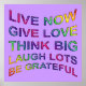 EDDA Fröhlich-textdesign | Regler: Lev nu, ge kärlek, tänka stort, skratta mycket, var tacksam