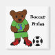 En underbar roligt för fotbollsspelare. Nalle i grönt, fotboll och kort, rödklack och redo för att sparka den där fotboll.