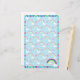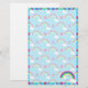 Ett färgrikt mönster av regnbågar, hjärtor och stjärnor, är på en blåttbakgrund med ljust - slösa polka dots.