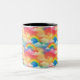 Ljusa och färgstarka mönster-regn griper över fluffa moln mot ett vibrerande himlar. Det upprepade motivet skapar en viskisk och glad bakgrund.