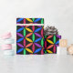 Abstraktens geometriska utformning av sammanflätande cirklar, ljusregn färg på svart bakgrund