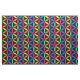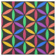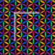 Abstraktens geometriska utformning av sammanflätande cirklar, ljusregn färg på svart bakgrund