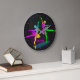En fantastisk dekorativ väggklocka för alla som kärlek dansar. Dessa två balettdansare i rampljuset på regnbåge färger dyker upp på en svart bakgrund. Känn dig fri att anpassa med en namn för den speciellare beröringen extra och en utmärkt gåva.