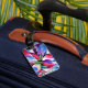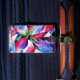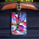 med ursprunglig design från vattenfärgsmålning av konstnären Sacha Grossel av ljusa, färgstarka, flerfärgade azalea-blommor. Den här blommigten är en visning för en nära makrosyn på dessa trädgårdblommor med röda, blå och lila petaler ge och abstrakt, surrealistisk känsla för denna botaniska inspirerade design. Den här bagagetaggen kan anpassas på baksidan så att den innehåller dina personuppgifter.