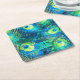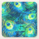 Regnbåge: Blå och Grönt Peacock Feathers Underlägg Papper Kvadrat