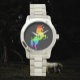 Denna iögonfallande design har en majestätisk regnbågsfärgad enhörning på en överstor silverarmbandsur. Den livfulla enhörningen sticker ut mot det slanka, polerade silvret och symboliserar frihet, magi och individualitet. Perfekt för dem som älskar att göra ett djärvt uttalande och omfamna sin unika, färgglada anda med stolthet. Denna klocka är det ultimata tillbehöret för alla som tror på kraften i drömmar och självuttryck.