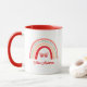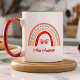 Den här söta personliga regnbågskoppen är en söt present till lärare eller någon som älskar glada och fantasifulla mönster. Med en handritad regnbåge i varma nyanser av rött, rosafärgat, grönt och orange med lövrik och vågig detaljering, visar mitten en söt fjäril för en extra touch av charm. Under regnbågen kan du lägga till lärarens namn eller en kort fras i lekfull, handskriven röd skrift, vilket gör koppen unikt personlig och meningsfull. Med en matchande röd insida och handtag är koppen lika visuellt tilltalande som den är funktionell - perfekt för att lysa upp en klassrumsdisk, hemmakontor eller morgonrutin. Oavsett om den används för kaffe, te eller dekorativt bruk, är denna anpassade namnkopp idealisk som tacksamhetspresent till lärare, som