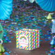 Regnbåge alla ålders flickors födelsedag: Visas här personlig för en första födelsedag med regnbågspottadekonetti