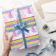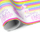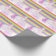 Randen för Unicornvattenfärgregnbågen mönstrade födelsedag som fyra slår in papper. Personifiera med ditt egna namn, läser för närvarande grattis på födelsedagen Taylor fyra. Gullig nyckfull chantering unicornmålning och design av Sarah Trett www.sarahtrett.com för www.mylittleeden.com på zazzle.