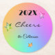 Färggradientbakgrund med ljusa stjärnor, 202X Cheers hälsning och gott om utrymme för ditt/dina namn. Dessa runda pappra underlägg är 4" x4", tillverkade av 50 pt pappersmassong och tryckta i vibrerande fullt färg. Ändra namn och år med hjälp av mallen som anges. Det finns även andra underlägg former. Sålt som set om 6. Se "Om den här produkten" på sidan för mer information.
