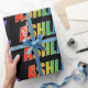 Denna spännande, livfulla, mångfärgade presentpapper design har det vanliga förnamnet "ASHLEY" med ett färgrikt regnbågsspektrum inspirerat färgmönster. Bakgrunden är svart. Spännande presentpapper som detta kan vara roligt att använda när man ger en present till någon som heter Ashley. [~Z0000354]