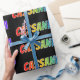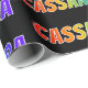 Denna spännande, livfulla, roliga presentpapper design har det vanliga förnamnet "CASSANDRA" med ett färgglatt regnbågsspektrum gradient färgmönster. Bakgrunden är svart. Färgglatt presentpapper som detta kan vara ett roligt sätt att förpacka en present som ges till någon som heter Cassandra. [~Z0000354]