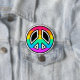 Den här slående knappen har ett fredstecken som är fyllt med vibrant regnbåge färg, som ställs in mot en fetstilt svart bakgrund. Den färgstarka fredssymbolen representerar harmoni, enighet och HGBTQ+-pride, skapar det som ett perfekt tillbehör för att sprida ett budskap om kärlek och jämlikhet. Fäst den i jacka, väska eller hatt för att visa ert stöd för fred och delaktighet.