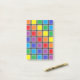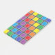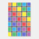 Abstraktens digitala färgad av regnbåge färgas mot en svart bakgrund med vad som verkar som vita repor inuti varje kvadrat.