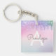 En roligt elegant faux glitter i enmajsregnbåge färg med monogram. Det här kan vara en roligt gåva till en ny tonåring drivrutin för att lägga till lite glam i nyckelringen.