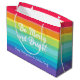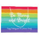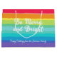 Vackra regnbåge julklappar i party i söt fet färg som lyder "Merry and Bright". Cheerful gay pride temade helgdag presenter för en HBT-familj.