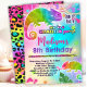 Kameleont tema födelsedagsinbijudan i vackra regnbågens färger.