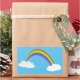 Förhoppningens och lyckans regnbåge med moln i en rektangulär dekal av tecknaden stil
