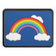 En illustration av en söt tecknad regnbåge med vita moln. Regnbågen kommer efter regnet, i livet är det fred och lugn. Den här enkla men beundransvärda färgen är en presentidé för flickor och barn, och sak älskare.