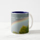 Bild av två regnbåge fullt som utfaller på mugg. Texten från Genesis 9 v 13.