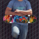 Ignorera din skjutbana med vår iögonfallande regnbåge med stänk-skateboard. Vibrant, fluorescerande stänk av färg brast över en slimmad svart bakgrund och skapar en fet kontrast som fångar lika mycket öga som dynamisk. Denna utformning förkroppsligar energi, kreativitet och gatukonst, skapar det perfekt för skater som kärlek att framträda. Vare sig du kör på gatorna eller duschar ditt däck, ser den neonregnbåge stänk till att ögon är på dig. Lägg till en elektrisk beröring till din skateboaringbåt stil med detta levande, konstnärliga mästerverk.